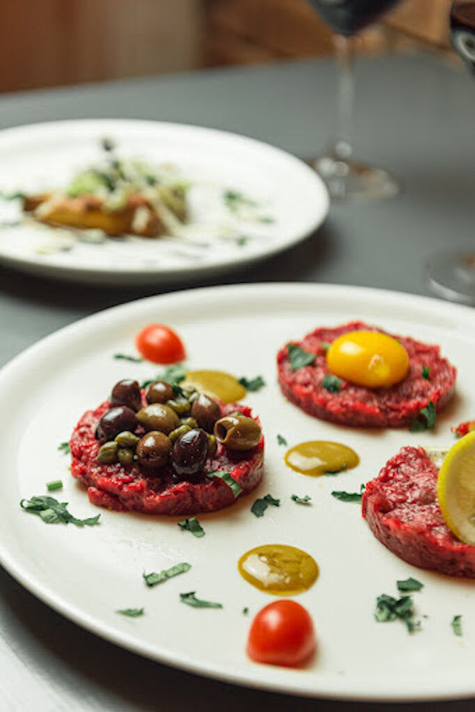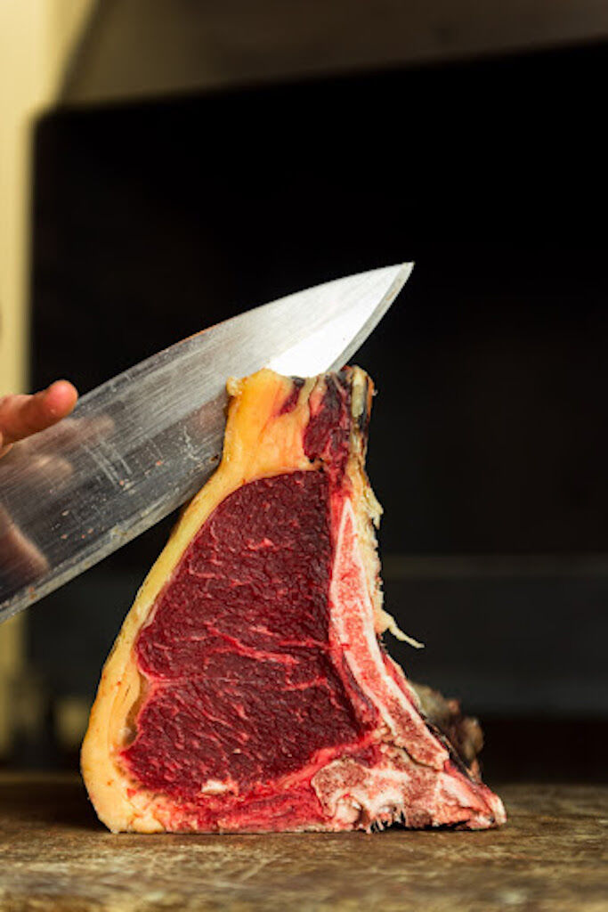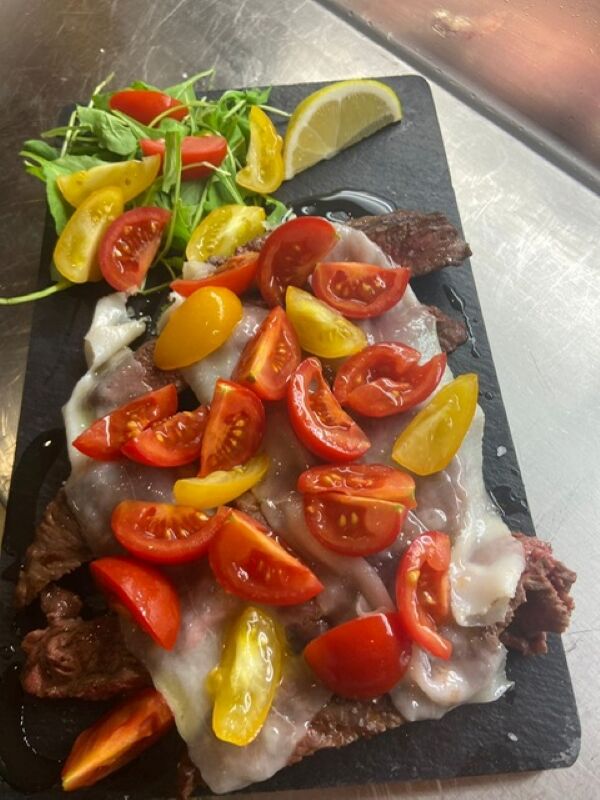 Il menù è incentrato sulla carne di qualità con tagli provenienti prevalentemente da allevamenti internazionali. Tra le specialità spiccano fiorentine,costate,entrecote e tagliate cotte su brace a legna inoltre, vengono serviti antipasti di salumi e formaggi locali, bruschette e piatti tipici della tradizione romana come,carciofi alla romana,alla giudia (di stagione), cacio ai 4 pepi, amatriciana,linguine con pesto alla romana e tante altre portate. Infine i contorni completano perfettamente le portate offerte. I dolci rigorosamente fatti in casa variano ogni giorno per mantenere la freschezza del prodotto.